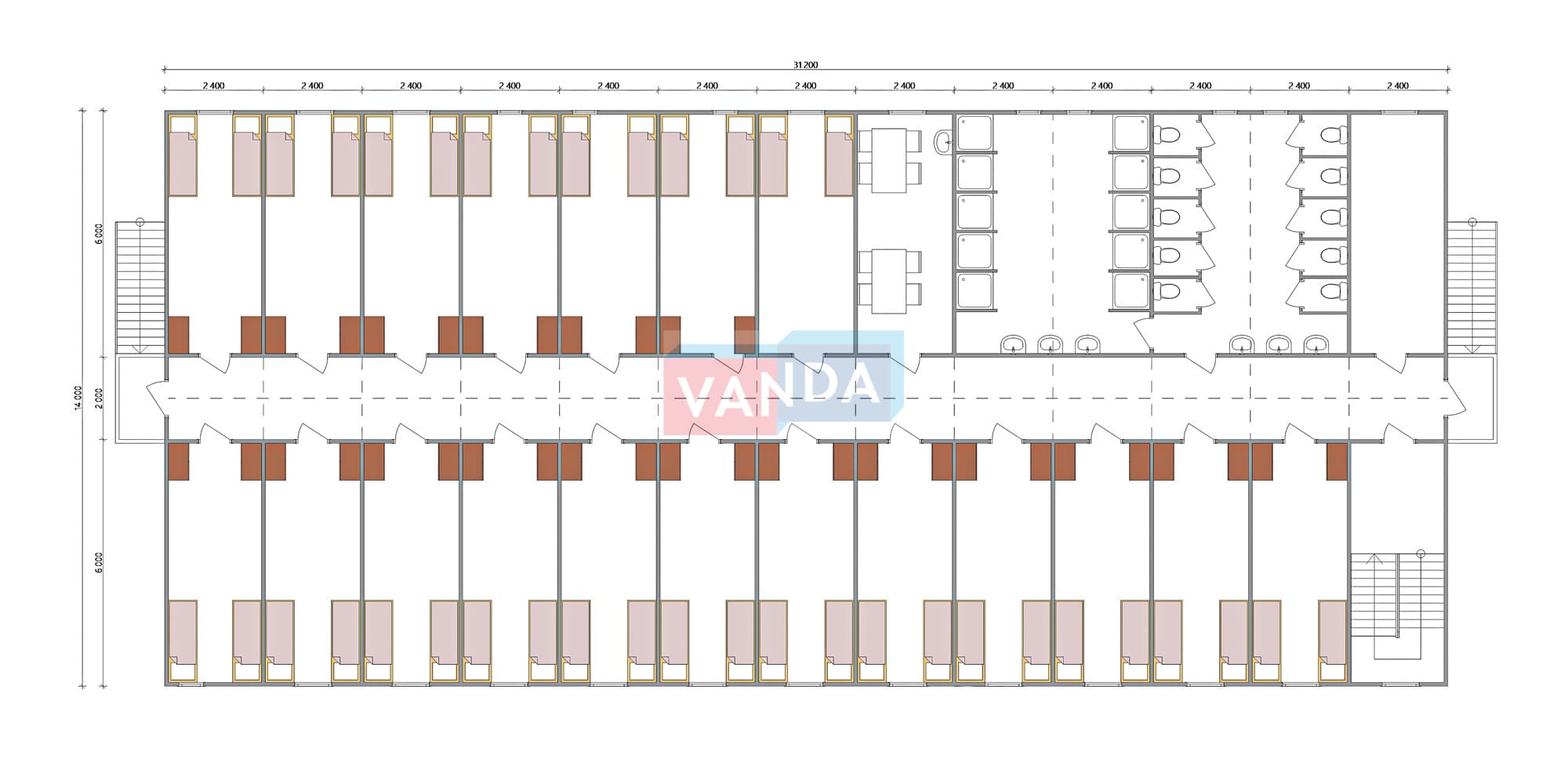 Проект вахтового посёлка 14.0х31.2 14.0x31.2 873.6 OSB 9 мм. Оцинкованный профлист 20 640 000 р. Уточняйте у менеджера
